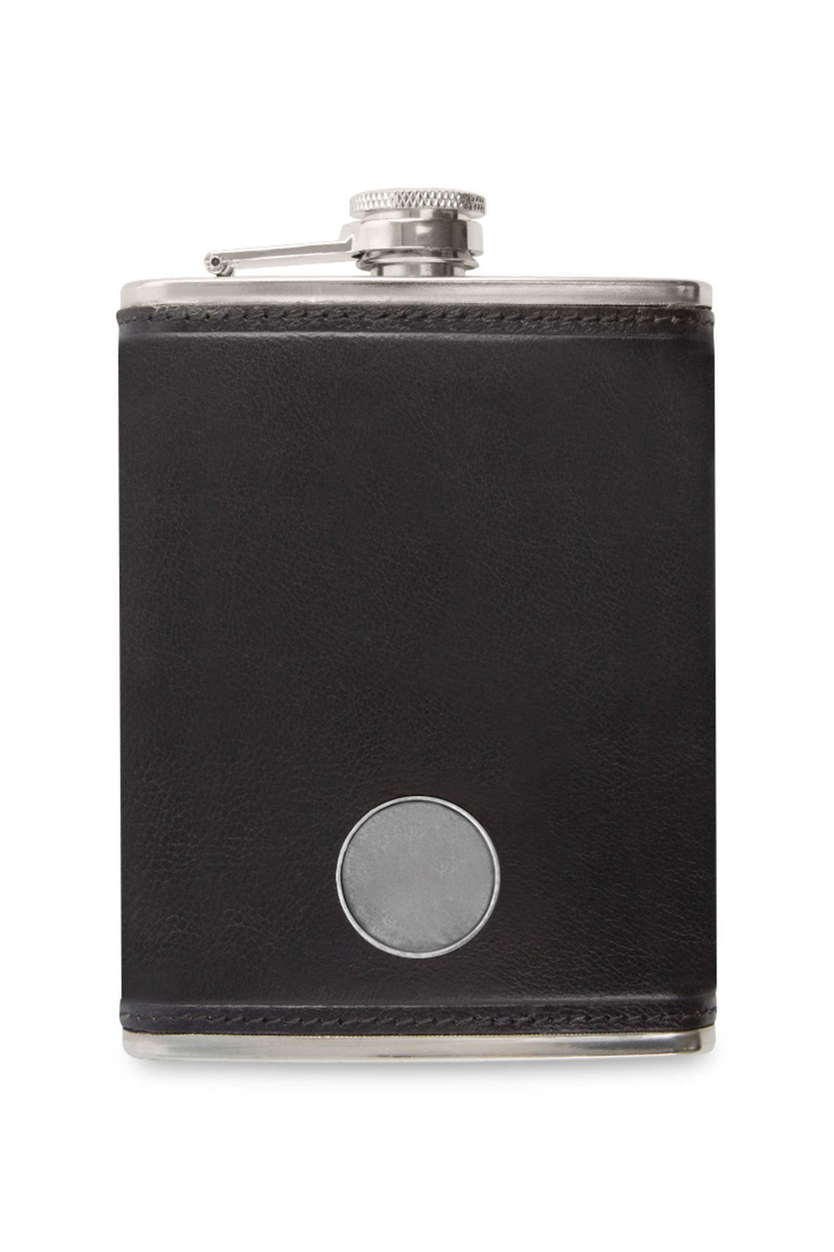 Designed for the golf course to be discreet, sleek and functional and fit easily into snugly into a golf bag Leak-proof, stainless-steel interior flask, curved design covered in genuine leather 8 oz capacity. Weight 5.1 oz PVC Free