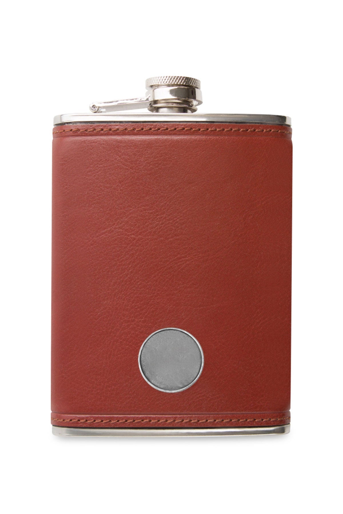 Designed for the golf course to be discreet, sleek and functional and fit easily into snugly into a golf bag Leak-proof, stainless-steel interior flask, curved design covered in genuine leather 8 oz capacity. Weight 5.1 oz PVC Free