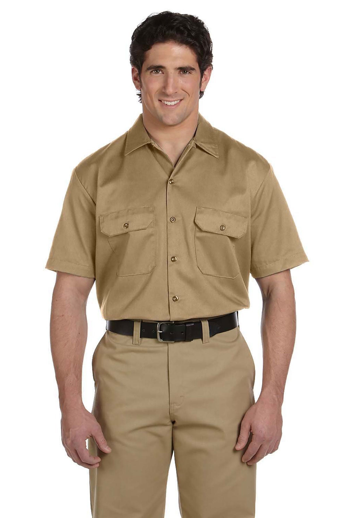 65% polyester, 35% cotton twill; Visa® moisture-wicking and stain-release finish; generous fit across shoulders; two chest pockets; 2-line melamine buttons; additional sizes and colors available for drop ship; Dickies logo patch at bottom of placket; Dickies products guaranteed for life; extra-long tail; shirt colors match Dickies traditional work pants;