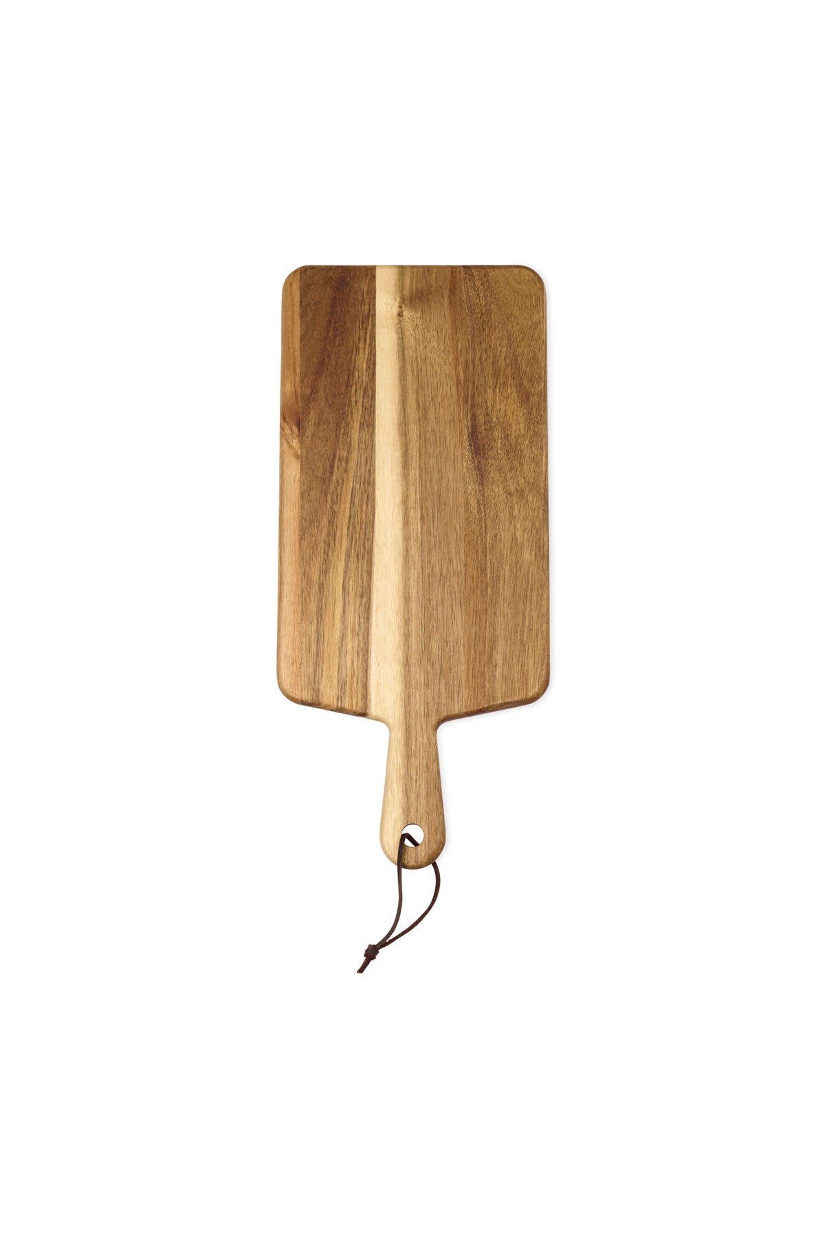 Handcrafted of stunning acacia wood, our La Cuisine Serveware was inspired by the love of a French Charcuterie Whether you're cutting vegetables or cheese, serving guests or simply leaving it hanging in your kitchen, this board has as much functionality as they do beauty KEY DETAILS: Acacia wood is a natural, renewable material Acacia wood board Rawhide hanging loop Due to the natural materials, each piece will be unique Hand Wash Only Made in China PVC Free Product Bamboo and wood products are prone to color variances and will vary between lots Due to the nature of bamboo and wood material, variations in laser imprinting quality and consistency may occur All wood boards will show knife marks when used for cutting and chopping. To maintain use and care, treating board with food grade mineral oil is recommended