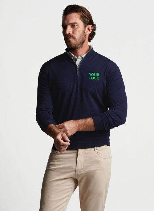- Quarter-zip pullover with zip-through, stand-up double-fleece collar